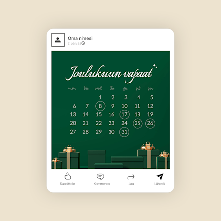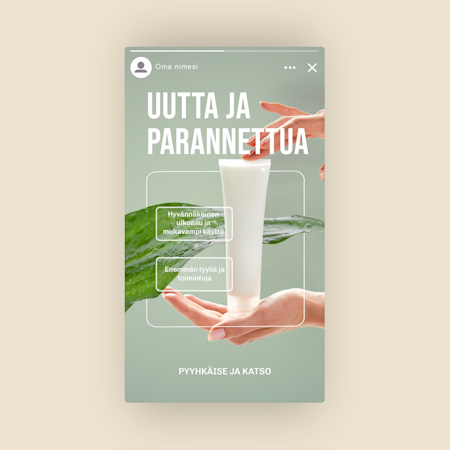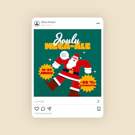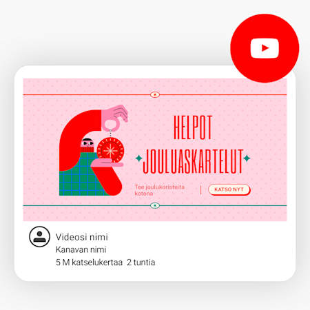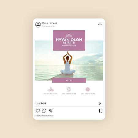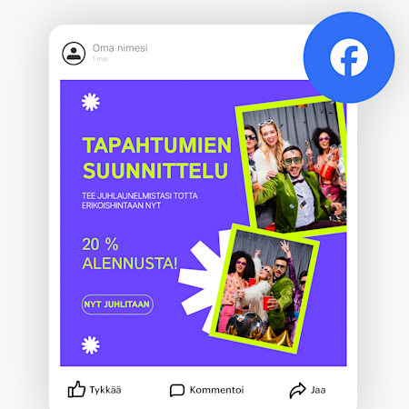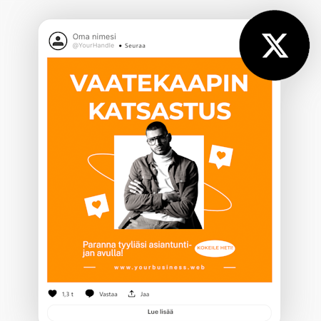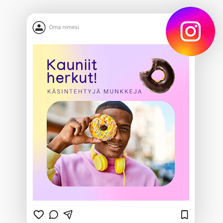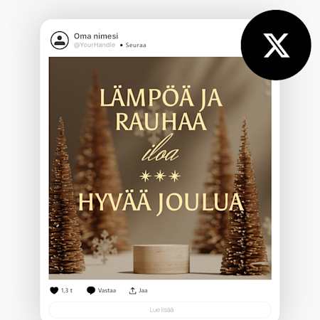 Meillä on valmiiksi suunniteltuja, muokattavia mallipohjia Instagramiin, Facebookiin, LinkedIniin, X:ään (Twitter) ja YouTubiin – runsaasti vaihtoehtoja eri julkaisupaikkoihin!