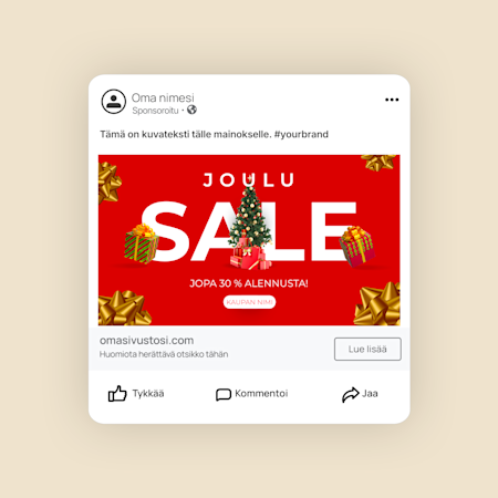 Nosta somemarkkinointisi uudelle tasolle ja lisää sitoutumista ilmaisilla ja huomiota herättävillä mallipohjilla ja kuvilla. Halusitpa sitten mainostaa alennusmyyntiä tai tuotepäivitystä, jakaa asiakaspalautetta tai kertoa seuraajille alan näkemyksistä, meiltä löytyy tuhansia, eri käyttökohteisiin suunniteltuja malleja, joita voit muokata kätevästi brändiisi sopiviksi. Lisää tykkäyksiä, seuraajia ja jakoja ilmaisilla mallipohjillamme jo tänään!