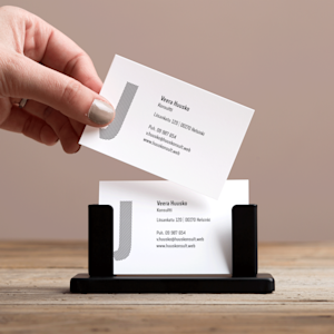 Sisusta työtilaasi tyylikkäällä mustalla korttikotelolla. Koteloon mahtuu jopa 60 vakiokokoista käyntikorttia. Tarkastele tietoja