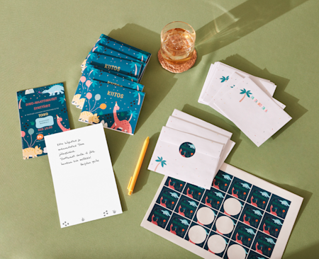 Luo hauskoja yksityiskohtia ja lämmintä tunnelmaa personoiduilla kutsuilla, paperitarvikkeilla ja koristeilla.