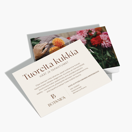 Käyntikorteista laadukkaisiin vaatteisiin – tutustu omalle alallesi suunniteltuihin mukautettaviin tuotteisiin ja suunnittelupalveluihin.