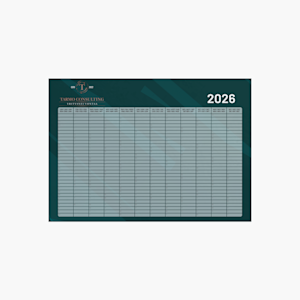 - Vuosittainen ruudukko (12 kuukauden yleiskatsaus, kuusi kieltä) – A1 (841 x 594 mm)